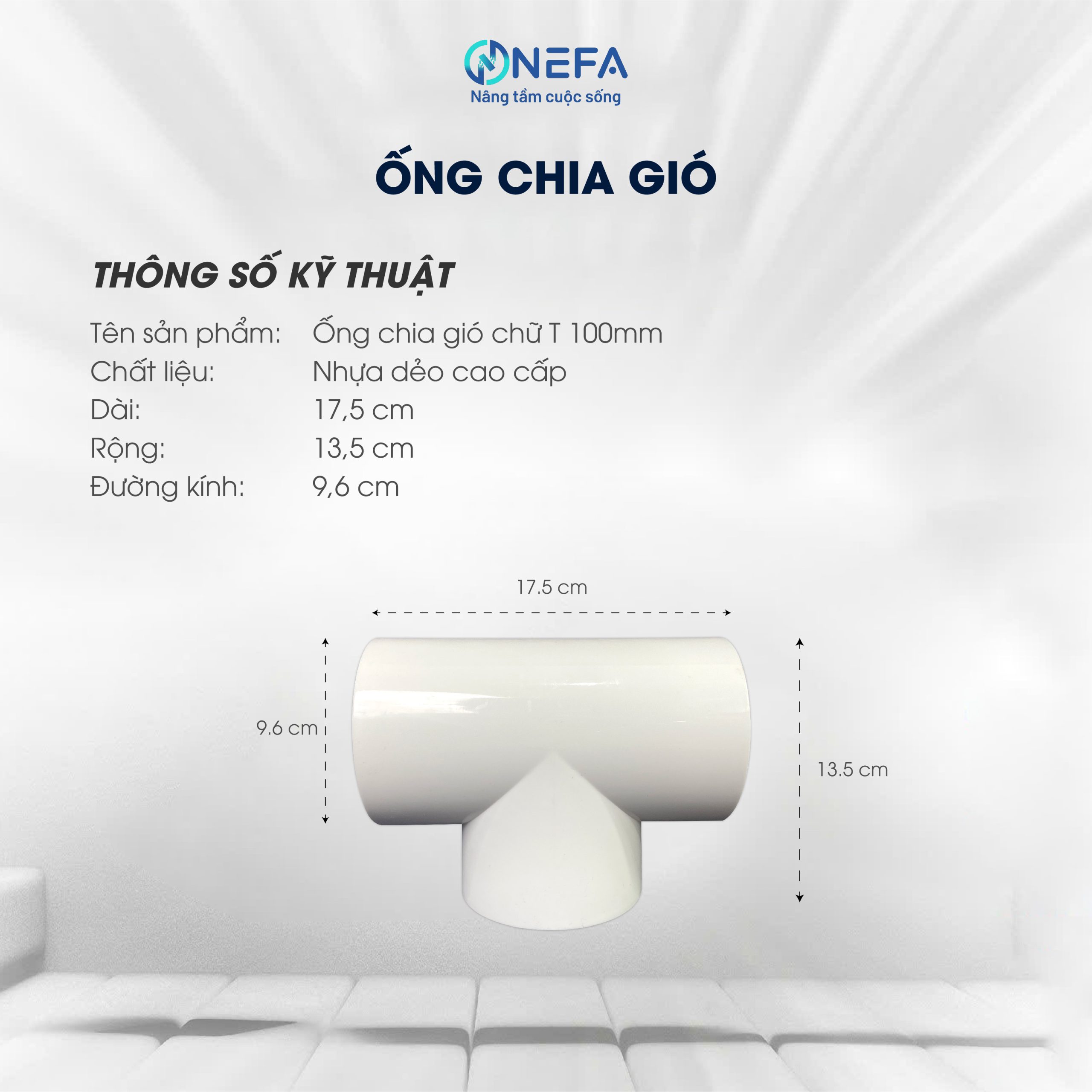 Ống chia gió chữ T NEFA không chỉ là giải pháp lý tưởng cho việc cải thiện chất lượng không khí mà còn giúp tiết kiệm chi phí và tăng cường hiệu quả hệ thống thông gió. Hãy chọn ngay sản phẩm của chúng tôi để trải nghiệm không gian sống và làm việc thoải mái hơn!